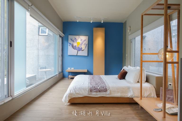 後湖水月的床是Queen Size的,也就是6X6.2尺的雙床加大長寬,大小軟硬都剛好適中。床的前後都是景觀窗,可以看得出來白天房裡的採光是很棒的,當然到了夜晚就寢時,你可以選擇把捲簾下拉關上,就不用擔心隔日的明亮光線會影響睡眠了。